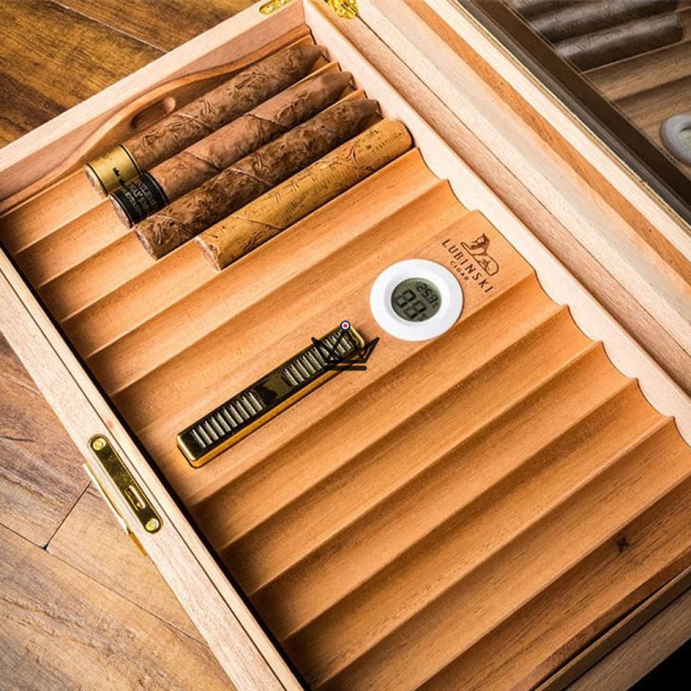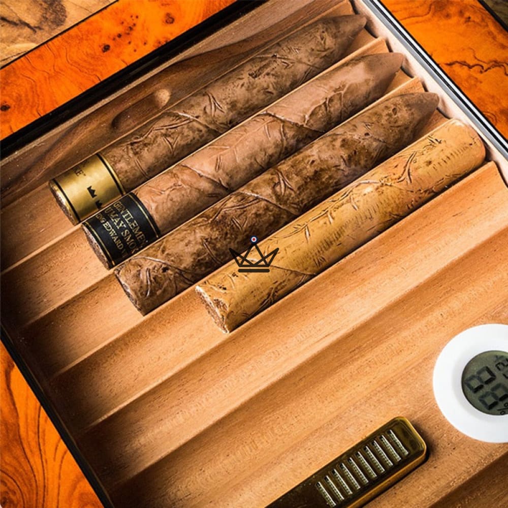 La cave à cigares Prince Arthur Deluxe est livrée avec un hygromètre et un humidificateur, des accessoires essentiels pour maintenir l'humidité relative appropriée à l'intérieur de la cave. Cela garantit que vos cigares conservent leur fraîcheur, leurs arômes et leurs caractéristiques uniques.