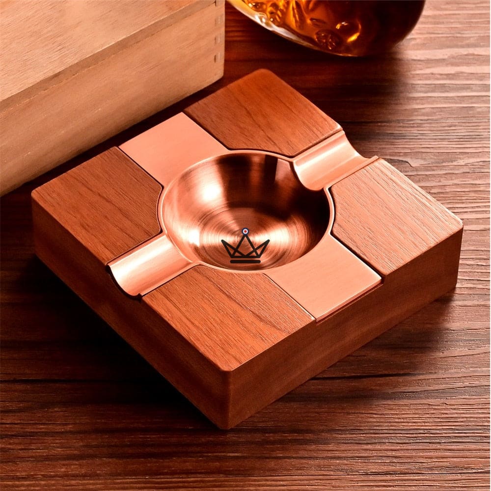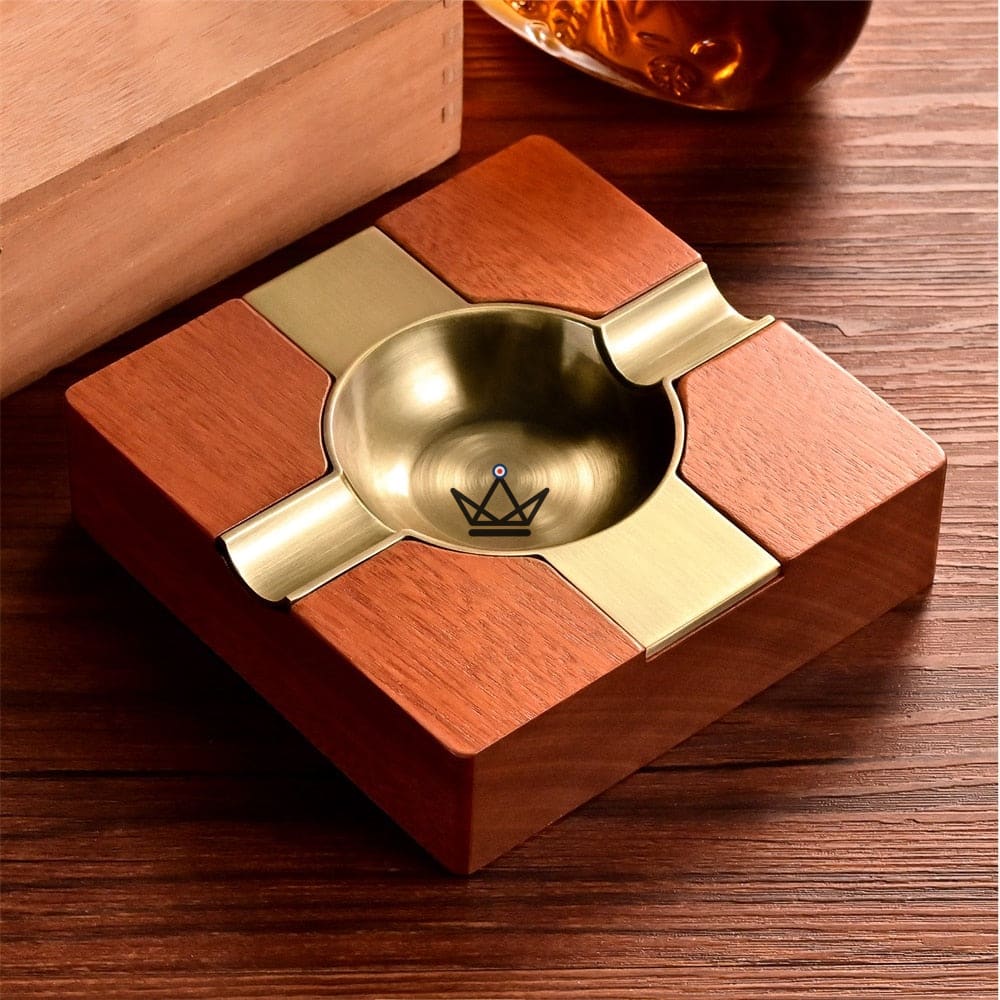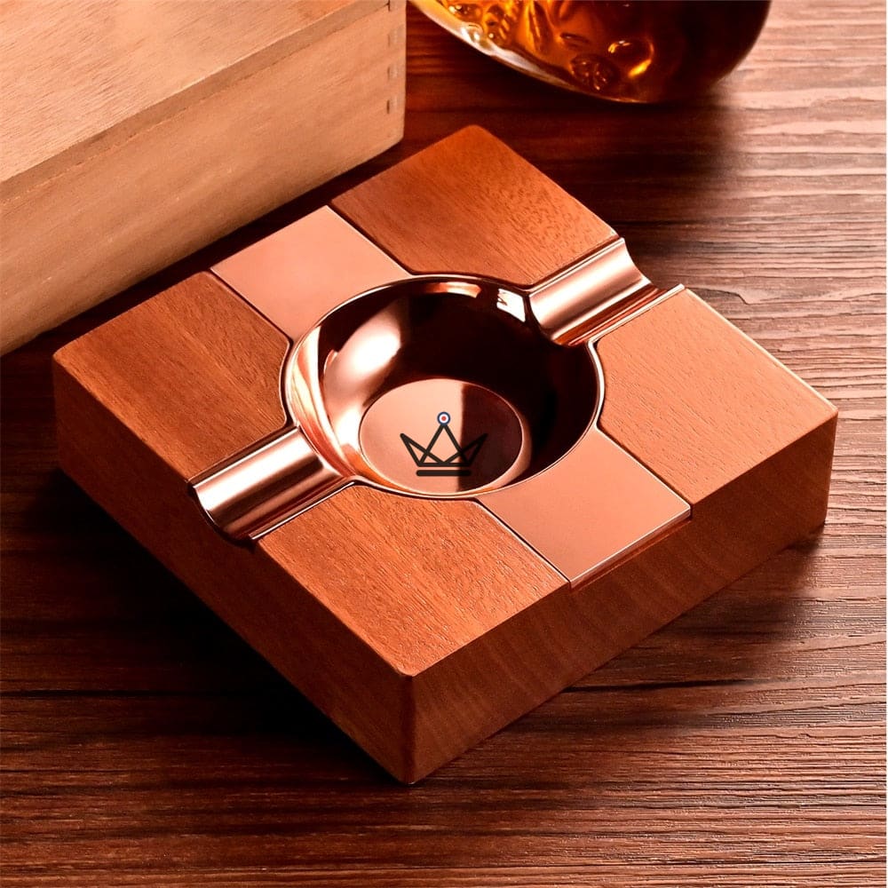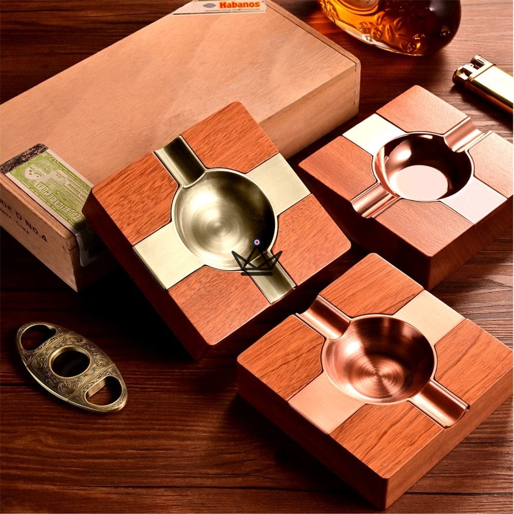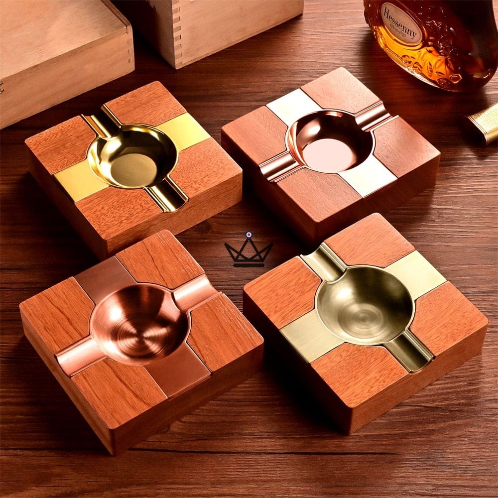 Composés d'une base en bois massif d'une qualité exceptionnelle, associé à un support en acier pour deux cigares, ces cendriers fait avec soin, sont de véritable objets de décoration.