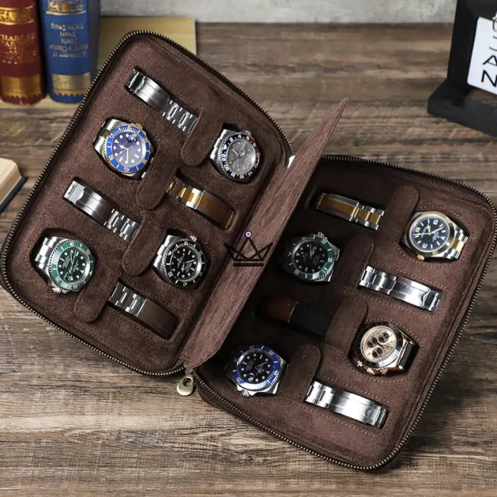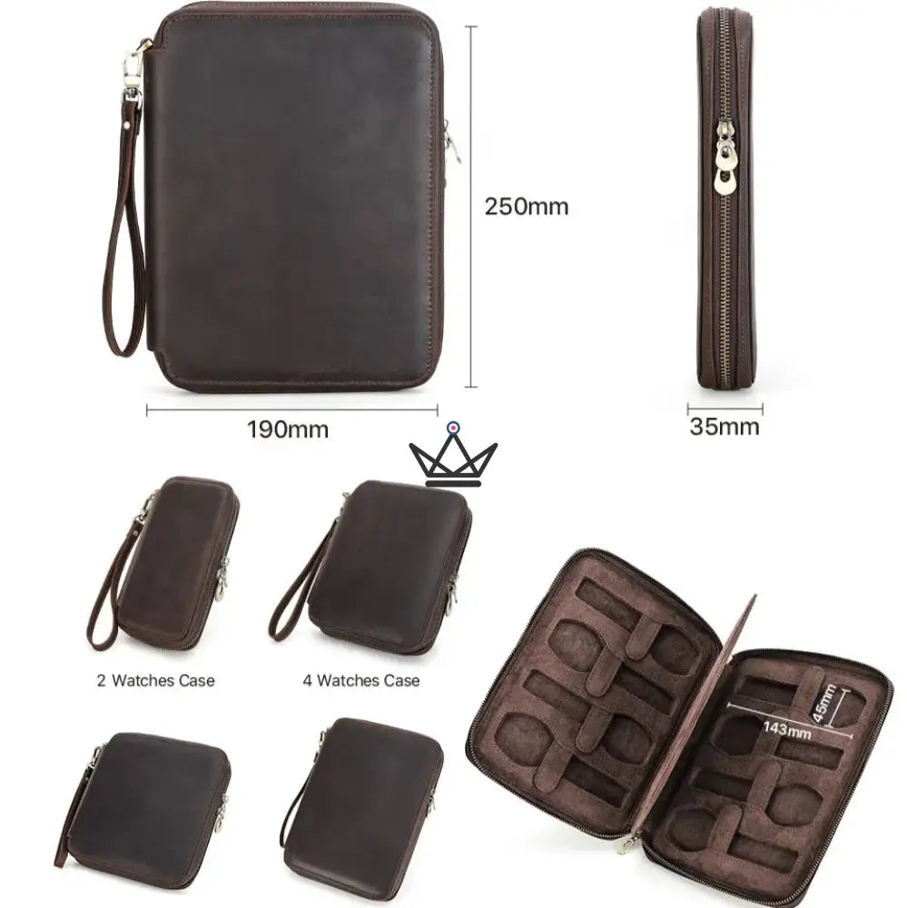Disponible en 4 formats pratiques (2, 4, 6 ou 8 montres), il s’adapte à votre collection et à vos besoins, que ce soit pour un week-end ou un voyage d’affaires. Sa fermeture éclair robuste et sa dragonne amovible facilitent le transport tout en offrant une prise en main confortable.