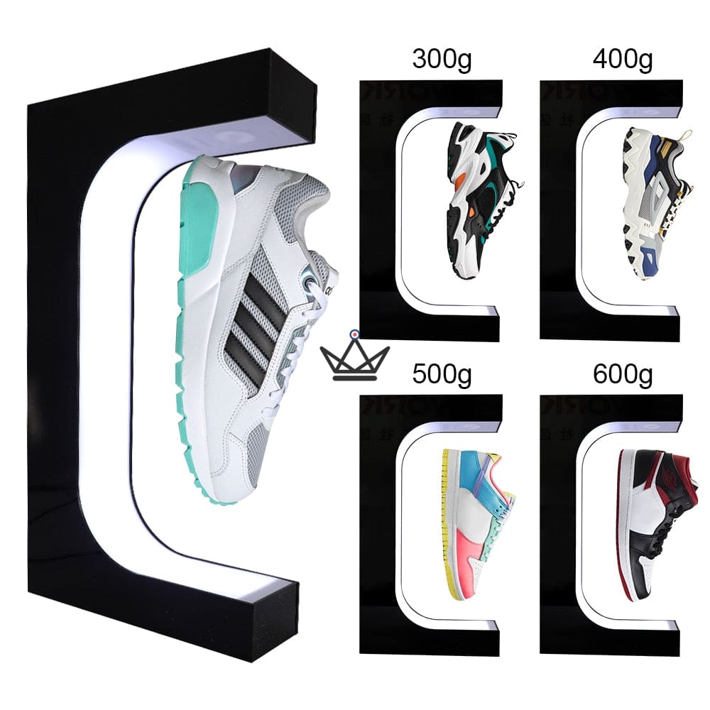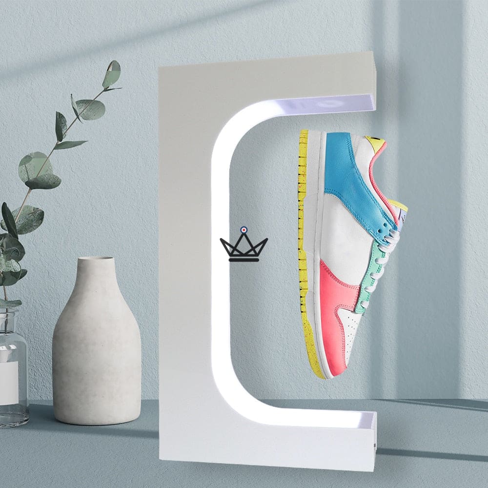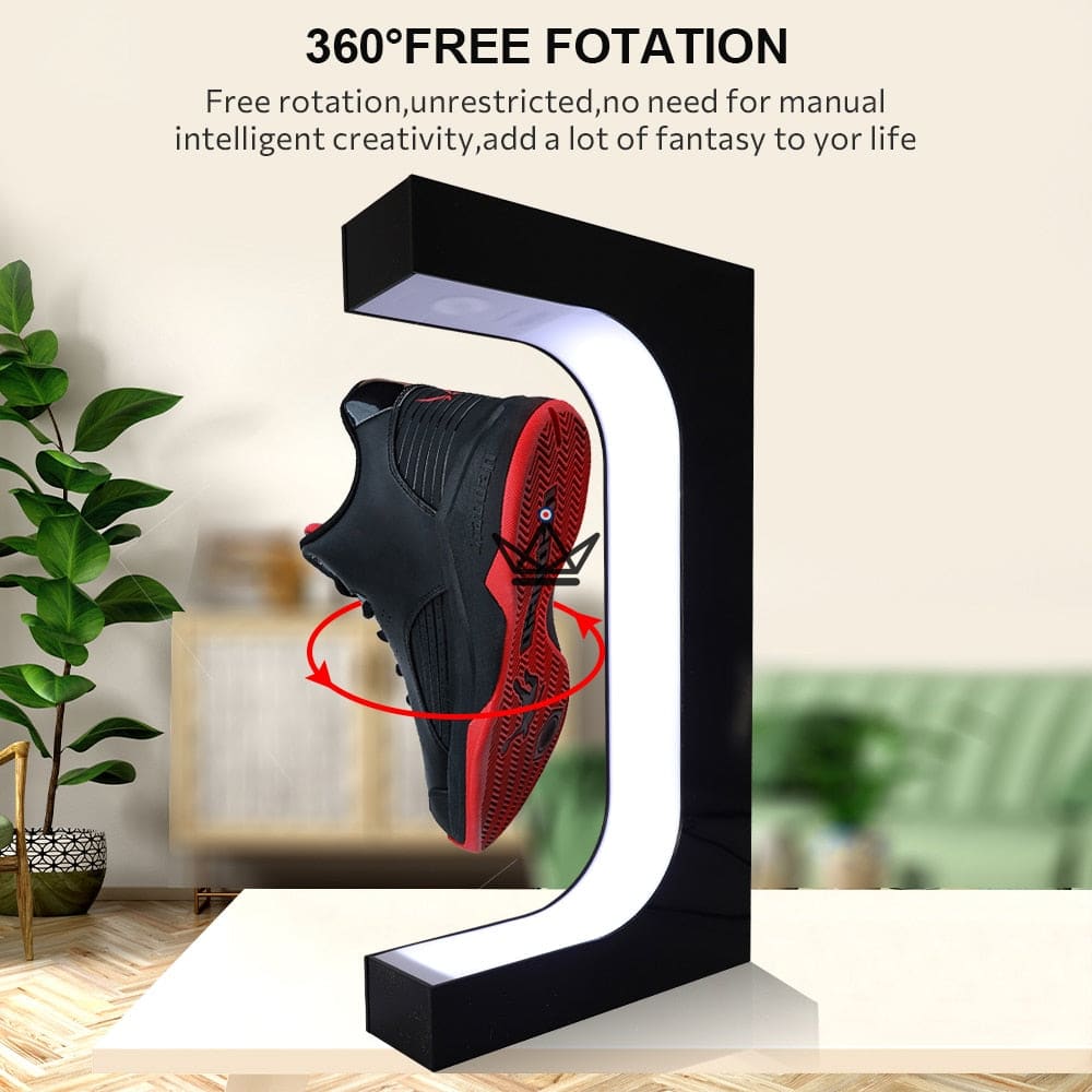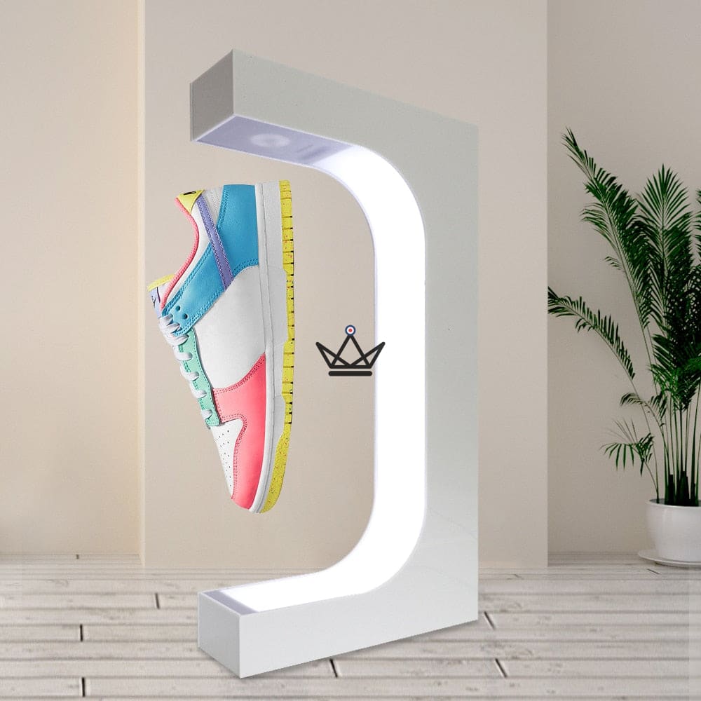 Das FlyingGrail Magnetic Levitation Shoe Display erweckt Ihre Sneaker-Sammlung zum Leben. Helle LED-Leuchten beleuchten jedes kleine Detail des Sneakers, während der Ständer elektromagnetischen Strom nutzt, um ihn aufzuhängen, und ein Ventilator ihn sanft anbläst, um ihn zu drehen.