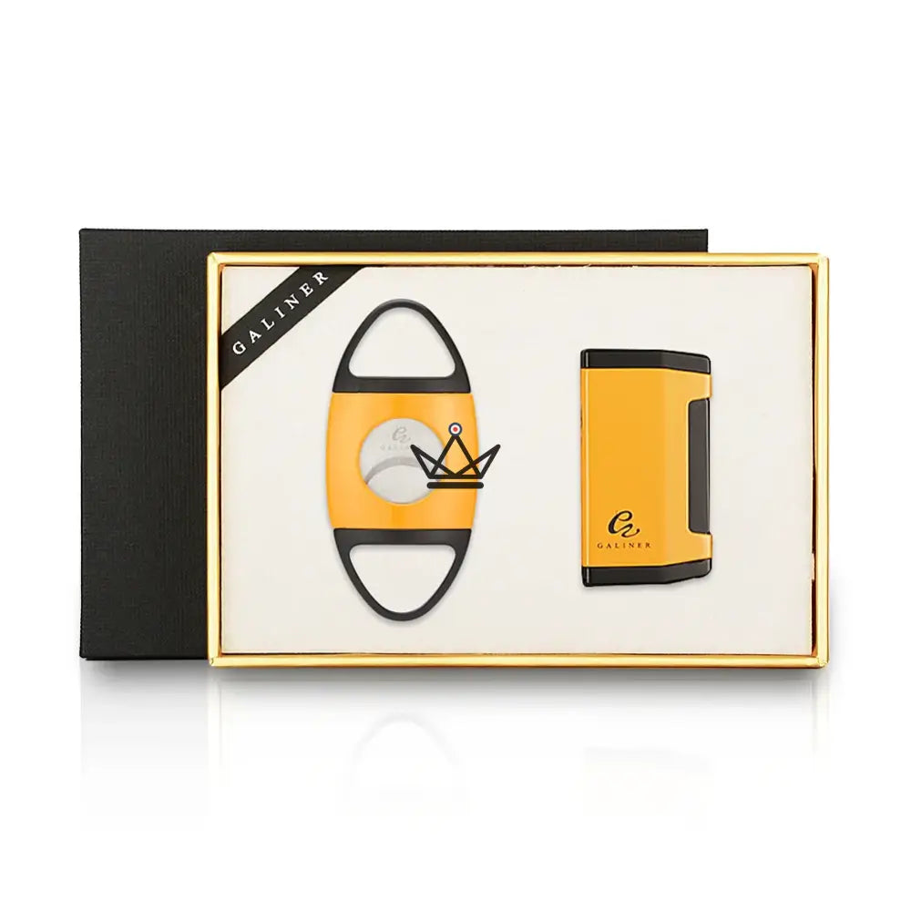 Entdecken Sie die GOLDYR- Box, eine perfekte Kombination für Zigarrenliebhaber. Dieses Set vereint Stil, Leistung und Funktionalität und ist ideal für einen raffinierten Verkostungsmoment. Erhältlich in zwei eleganten Farben: Flame Yellow und Ebony Black , passt es sich Ihrem Geschmack an und verleiht Ihrem Ritual einen Hauch von Raffinesse.