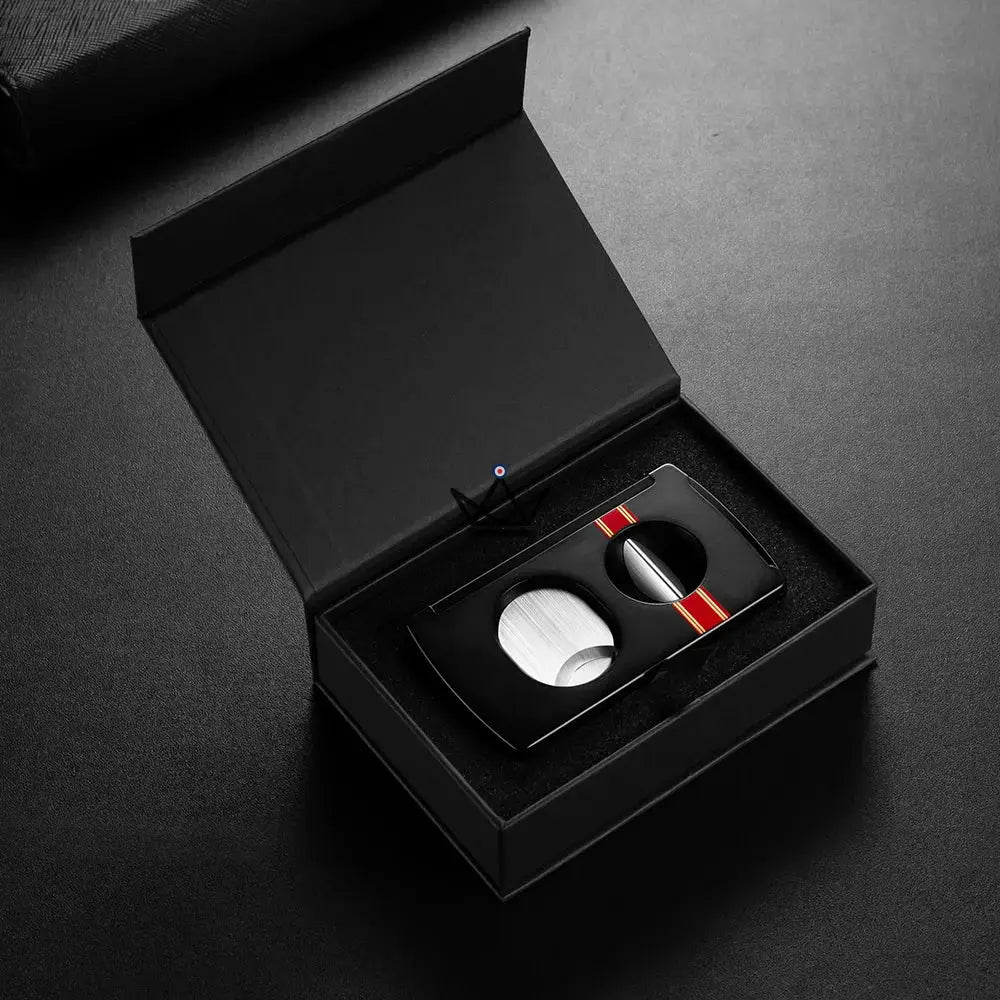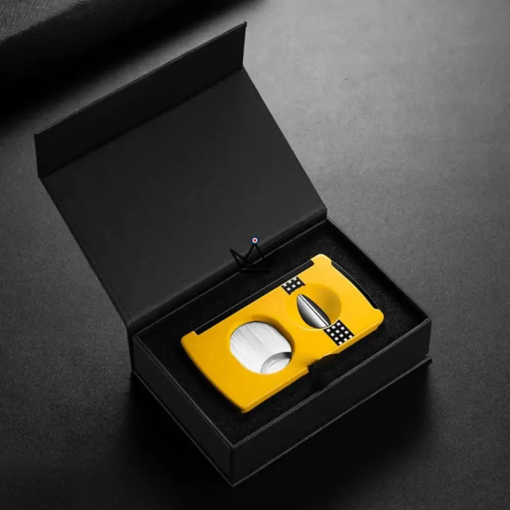 Auch ästhetisch überzeugt dieser Zigarrenschneider: Er ist in sechs eleganten Ausführungen erhältlich und wird in einer edlen Geschenkbox geliefert.