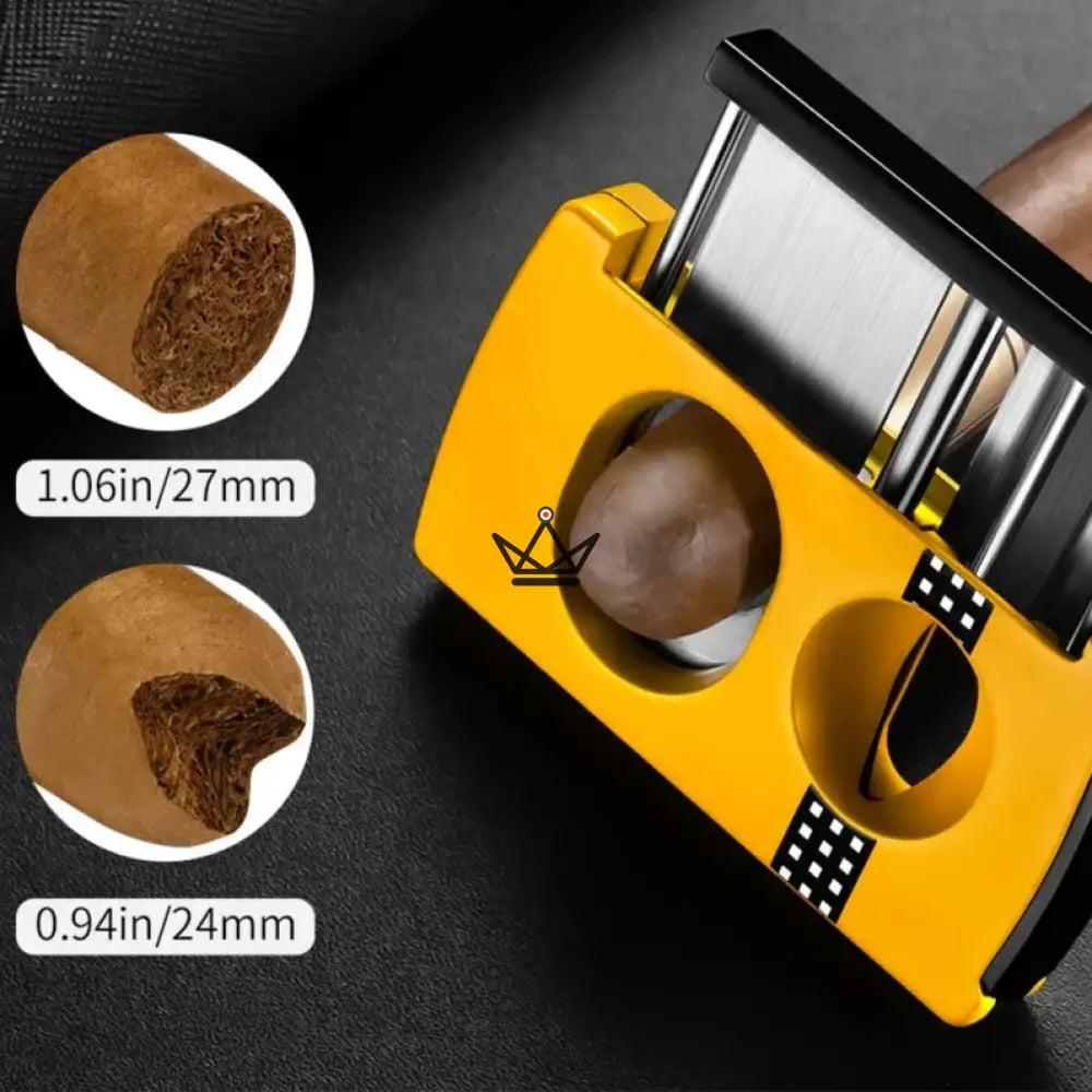 Sein halbautomatischer Mechanismus gewährleistet eine reibungslose und sichere Handhabung, ideal zum Schneiden von Zigarren mit einem Durchmesser von 24 bis 27 mm.