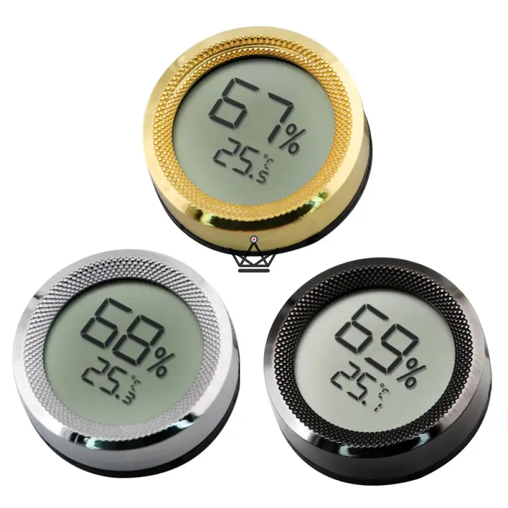 Das elektronische Zigarren-Hygrometer von CarbonRing ist ein unverzichtbares Zubehör für jeden Zigarrenliebhaber, der Wert auf die Qualität seiner Sammlung legt. Der CarbonRing ist in drei stilvollen Ausführungen erhältlich: Gold, Schwarz und Silber. Er wurde entwickelt, um die relative Luftfeuchtigkeit und Temperatur Ihres Cohiba-Humidors genau zu messen.