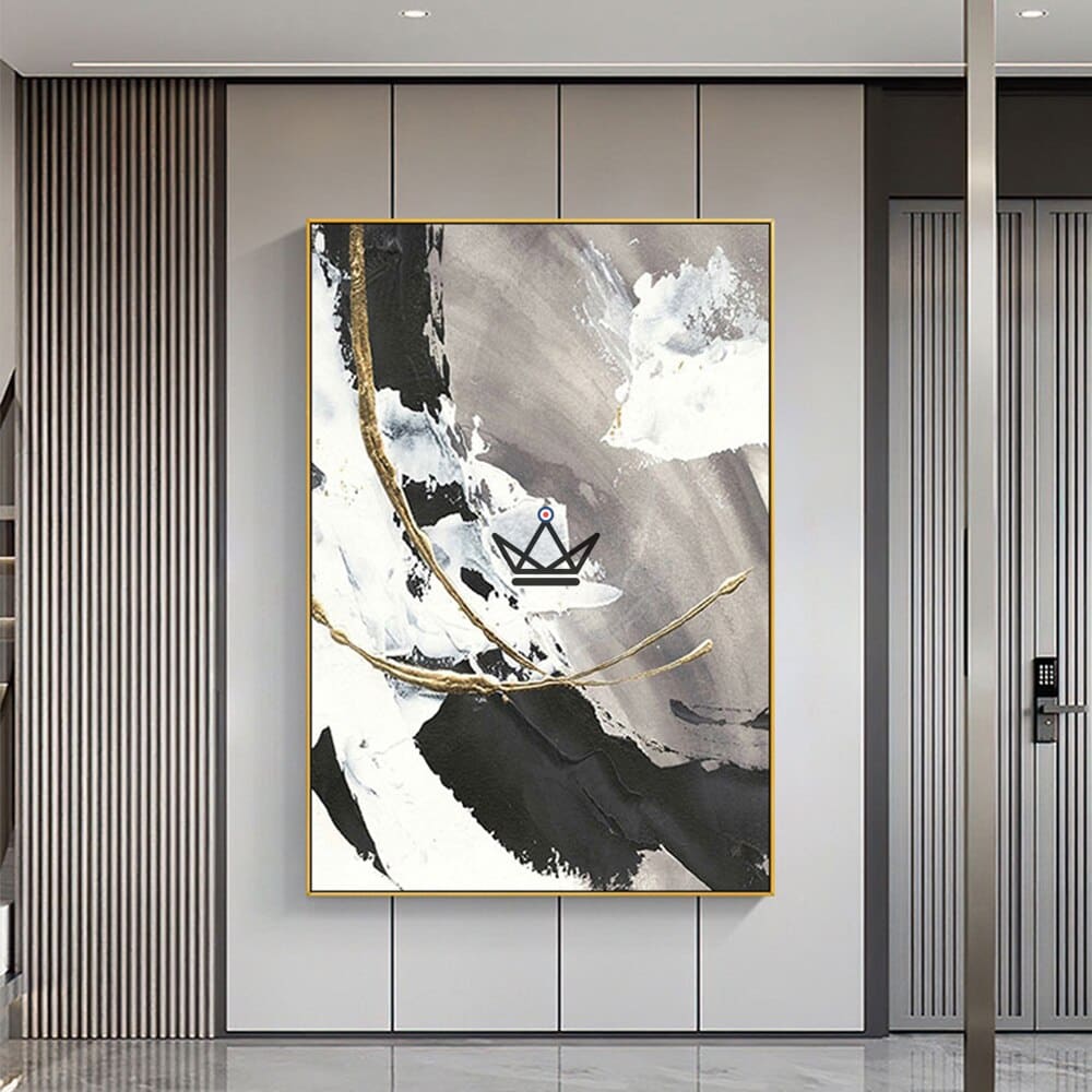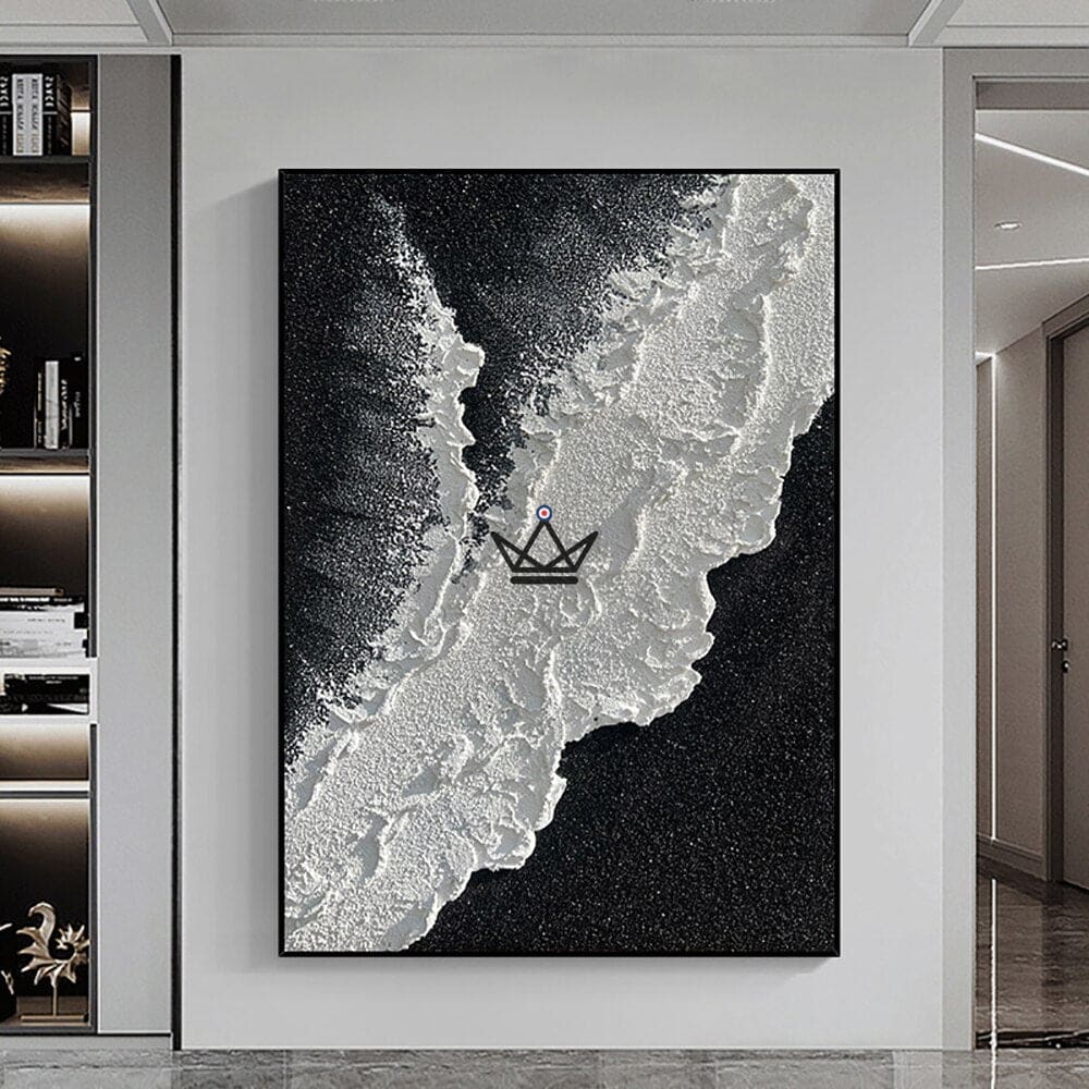Diese abstrakte Schwarz-Weiß-Malleinwand zeigt eine strukturierte 3D-Welle, handgemalt in Öl. Es ist das Werk eines leidenschaftlichen Künstlers, der fleißig daran gearbeitet hat, ein modernes Kunstwerk zu schaffen, das alle Blicke auf sich ziehen wird. Dieses abstrakte Gemälde eignet sich perfekt zur Dekoration Ihres Wohnzimmers und verleiht Ihrem Wohnraum einen Hauch von Raffinesse.