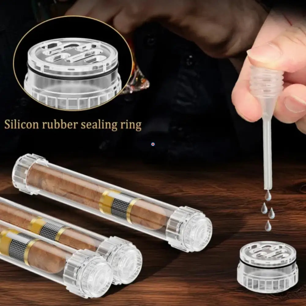 Dieses Set enthält drei transparente Reiseröhrchen mit integrierten Befeuchtungsringen. Sie ermöglichen den sicheren Transport Ihrer Lieblingszigarren und gewährleisten dabei die optimale Luftfeuchtigkeit.