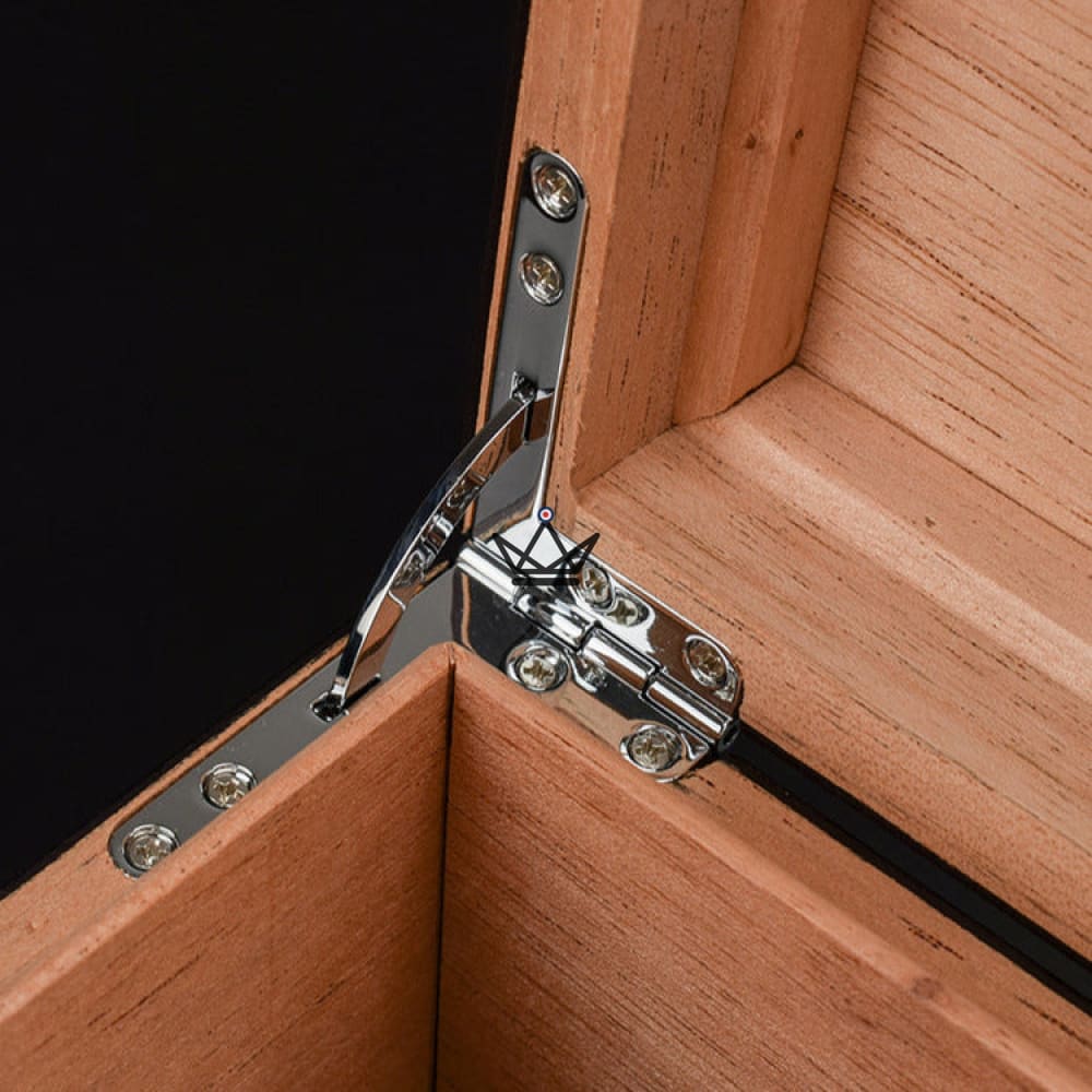 The glass window integrated into the top panel offers a direct view of your cigars, even when closed. This aesthetic detail preserves humidity stability while adding a touch of refinement.