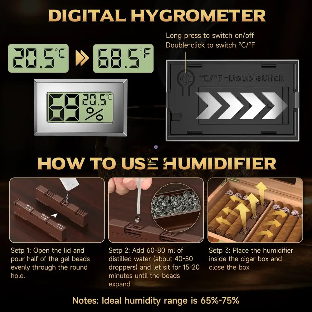 The built-in digital hygrometer allows you to check real-time humidity in °C or °F.