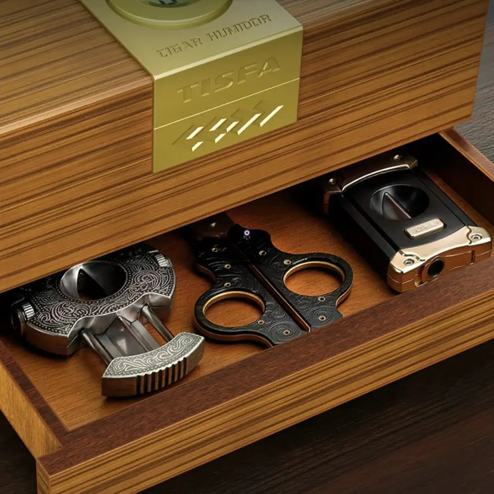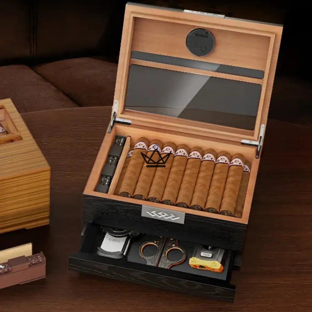 ✔️ Integrated lower drawer : ideal for storing cigar cutters, lighters, or maintenance accessories (max height: 1.7 cm).