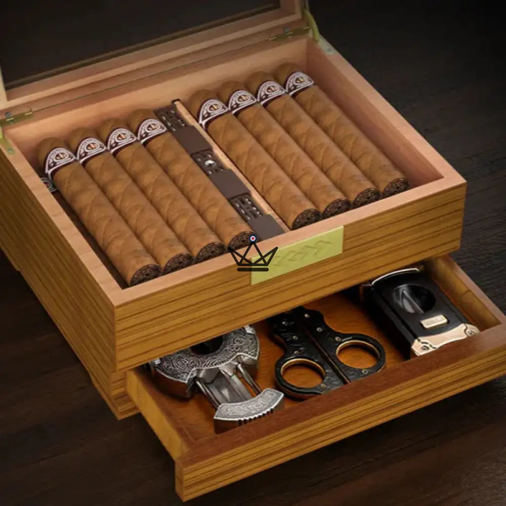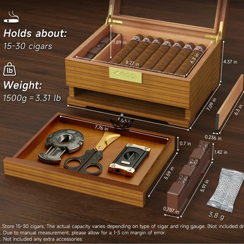 ✔️ Capacity: 15 to 30 cigars depending on their caliber (robusto, toro, churchill type).
